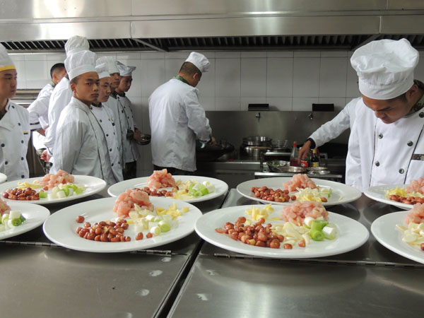 学习各种菜肴的烹调方法、味型、精典名菜以及创新菜,各种火锅、生猛海鲜、花色拉盘、食品雕刻、整料出骨、菜肴围边、热菜、凉菜、卤菜、烧烤。学习3个月全部实际操作,学会为止。
