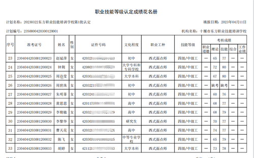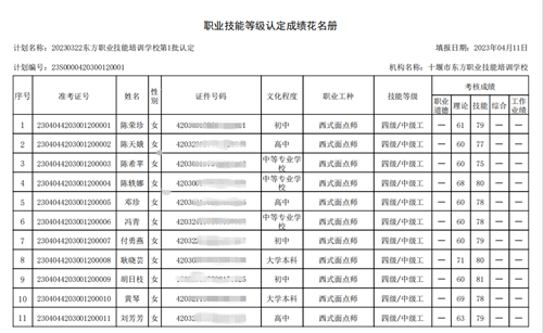 2023年第1批次西式面点师技能等级认定考试成绩公示