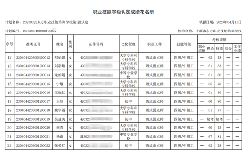 << 2023年第1批次西式面点师技能等级认定考试成绩公示