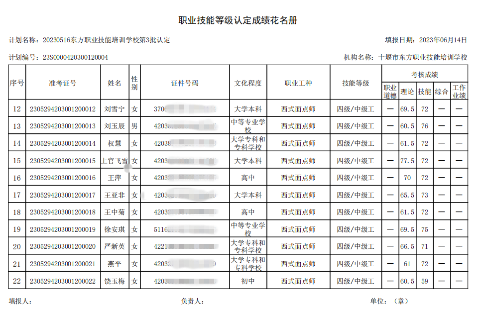 2023年第3批次西式面点师技能等级认定考试成绩公示