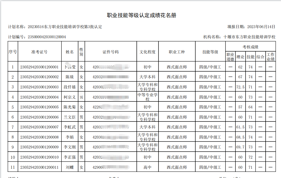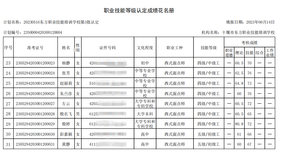 2023年第3批次西式面点师技能等级认定考试成绩公示