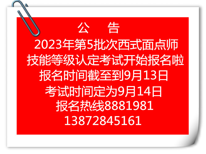 2023年第5批次西式面点师技能等级认定考试现在开始报名啦!有需要的人士可前来报名,报名截至到9月13日,考试日期定于9月14日开考。