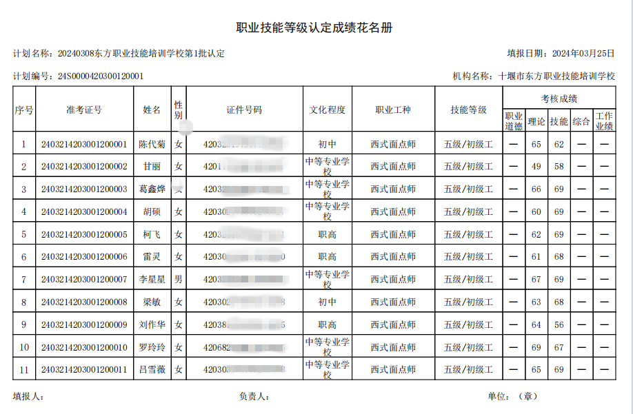 2024年第1批次西式面点师技能等级认定考试成绩公示