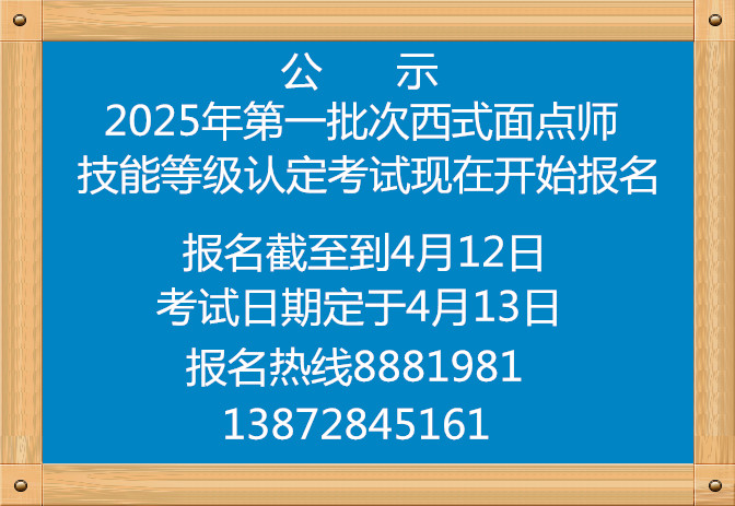 十堰市东方职业技能培训学校2025年第1批次西式面点师初级工(五级),技能等级认定考试现在开始报名啦!有需要的人士可前来报名,报名截至到4月12日,考试日期定于4月13日开考!