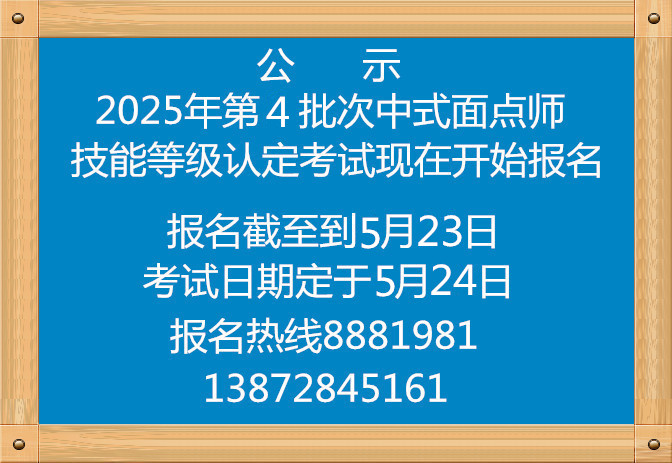 十堰市东方职业技能培训学校2025年第4批次中式面点师初级工(五级),技能等级认定考试现在开始报名啦!有需要的人士可前来报名,报名截至到5月23日,考试日期定于5月24日开考。